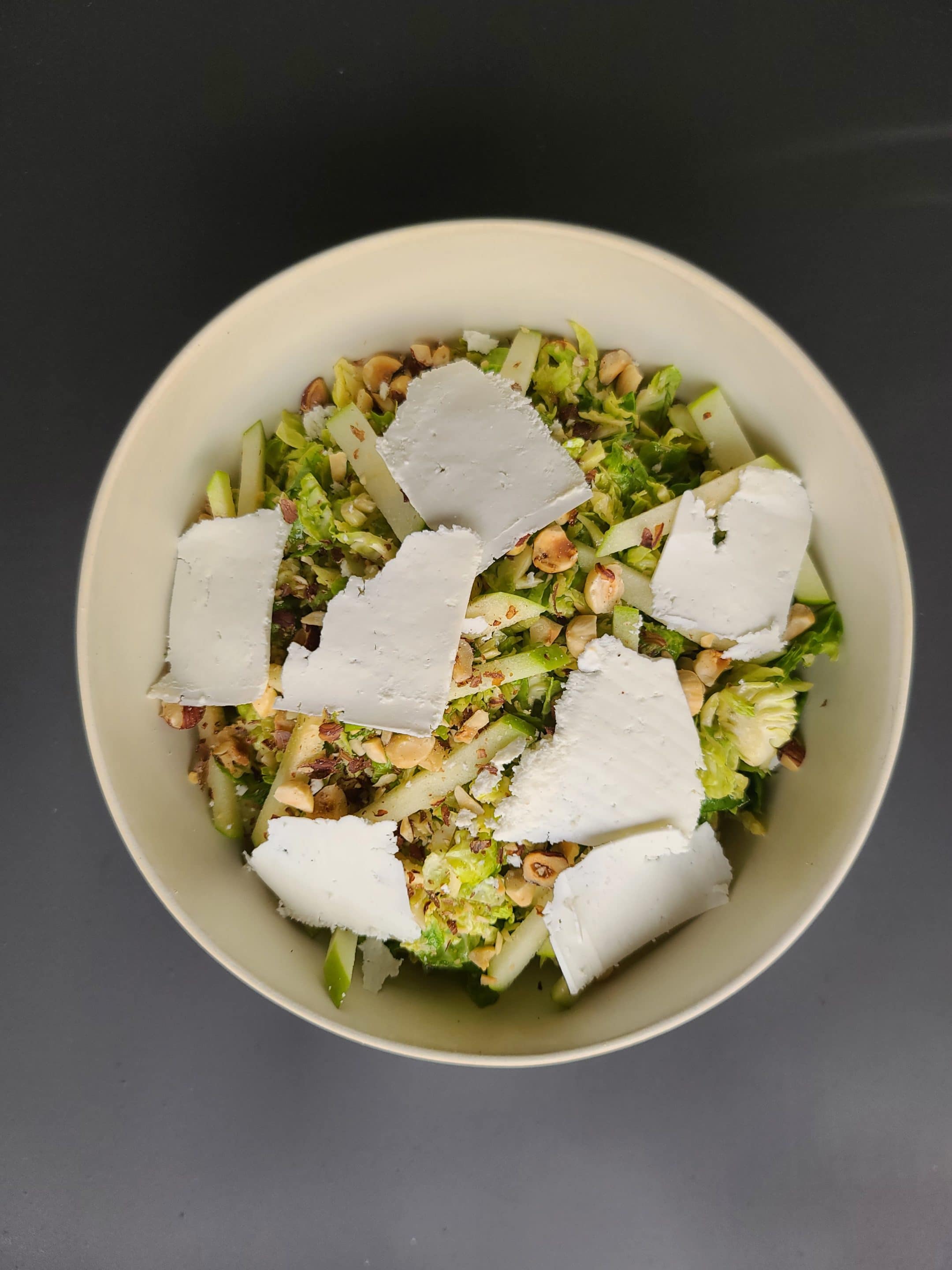 shaved Brussels sprouts, granny smith apples, ricotta salata, toasted hazelnuts, lemon honey dressing vegetarian gluten-free